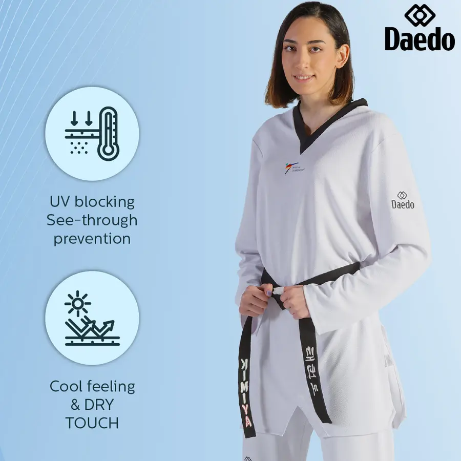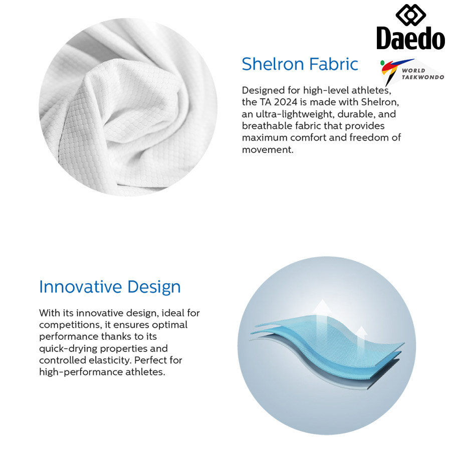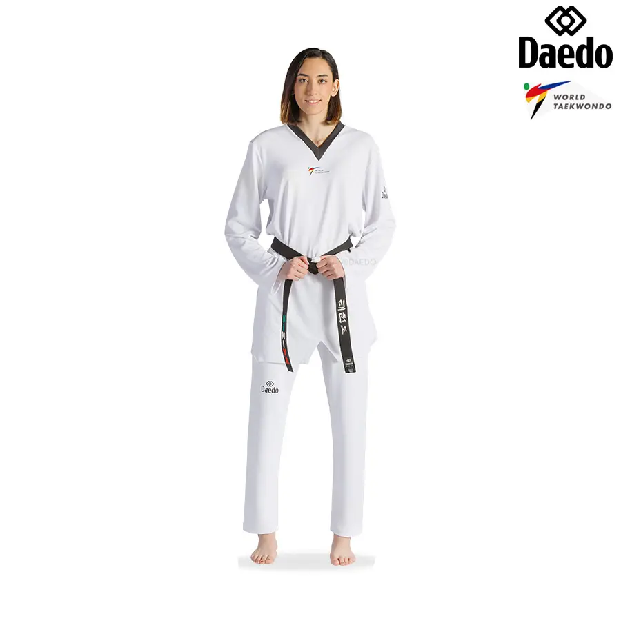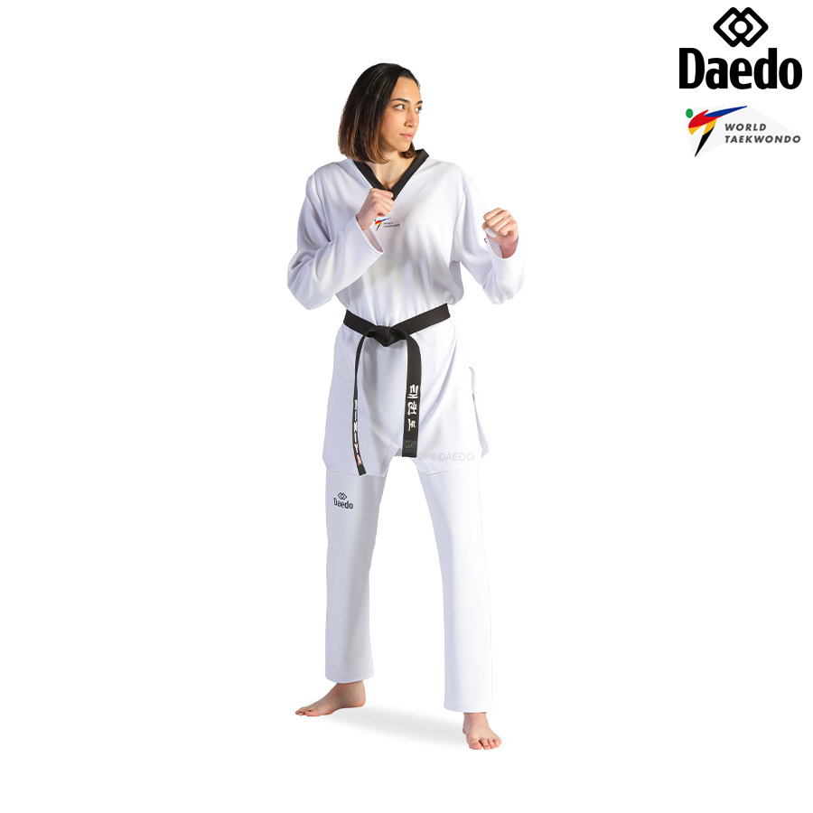 Introducing the new competition uniform by Daedo, handmade in the Daedo facilities using high-quality European fabrics. Designed to provide comfort and flexibility during training and competition. Our competition uniform has been approved by World Taekwondo and is suitable for practitioners of all levels. Professional Taekwondists such as Cecilia Castro, Daniel Quesada and Jone Magdaleno are already using it.